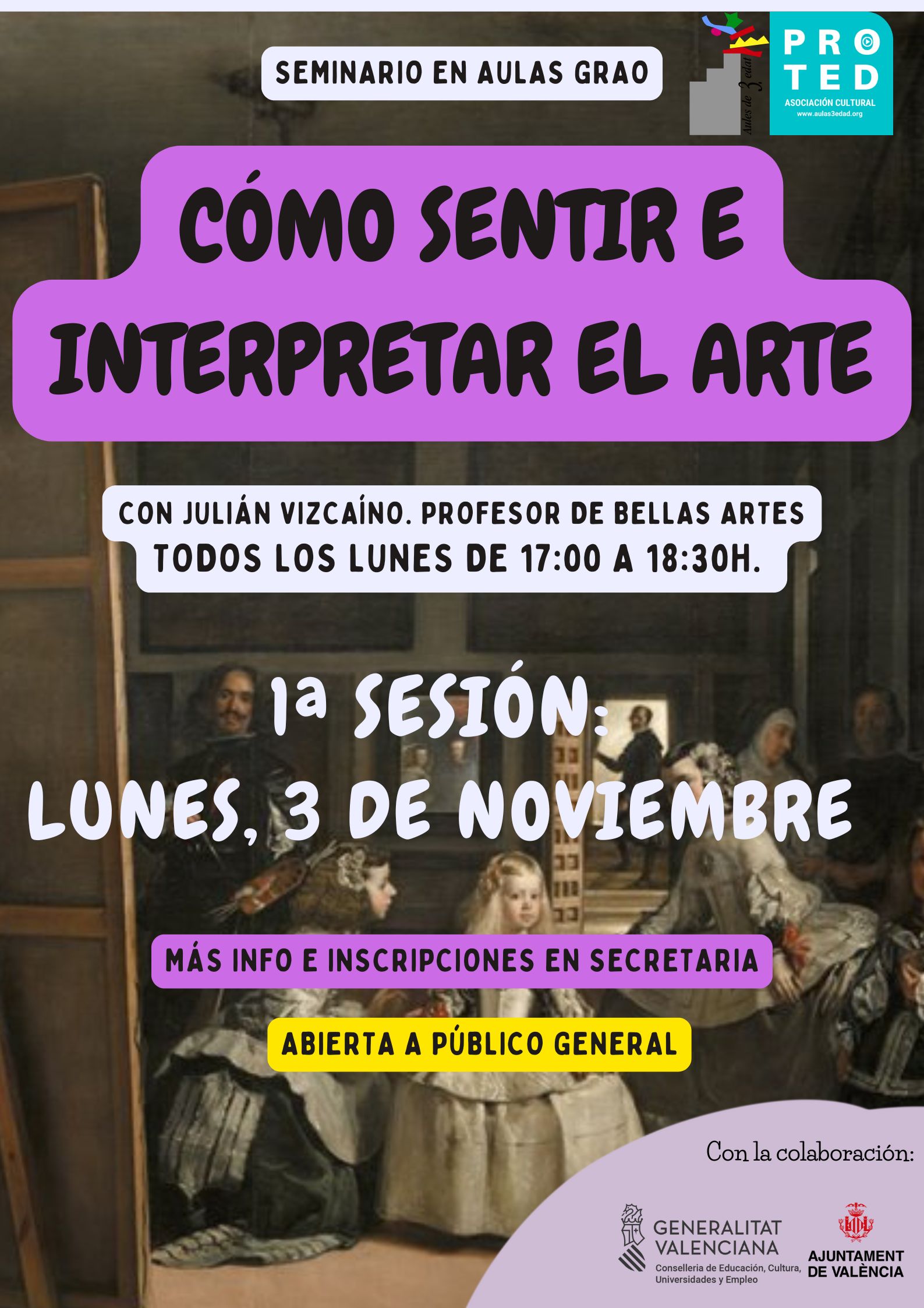 Lugar: Aulas 3ª Edad Valencia El Grao. Centro Social El Grao. C/ Jerónimo de Monsoriu, nº 19. Aula 6.6